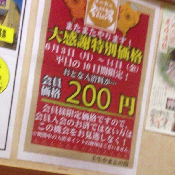 6月14日の日記今日もめっちゃ暑かった。6月の暑さとしては観測史上トップクラスの暑さだとかなんとか・・・ということでスパ銭に来た。会員限定で入浴料200円。しかも今日まで。せっかく会員になってるのでこれは行くしか無い(´ー`)また200円イベントやって欲しいな もっと見てみる→『関西アラサー&アラフォー友達の輪交換日記』 by みんなの交換日記 wakka
