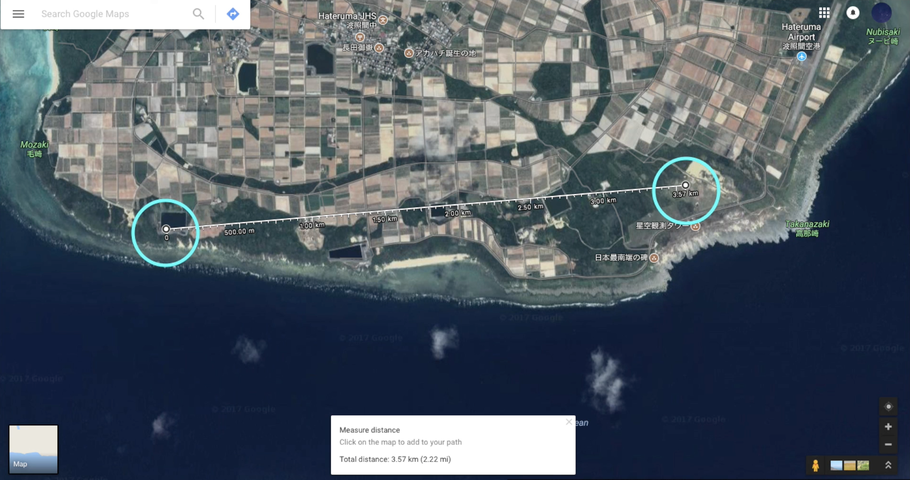 動画を検証していく中で、我々のいた場所と宇宙船が出現した場所の距離がある程度特定されましたが、その距離はおおよそ3.5kmほどの至近距離であり、てっきり海から宇宙船が出てきたものかと思いきや、実は島の中の地上から出現していたのでした。