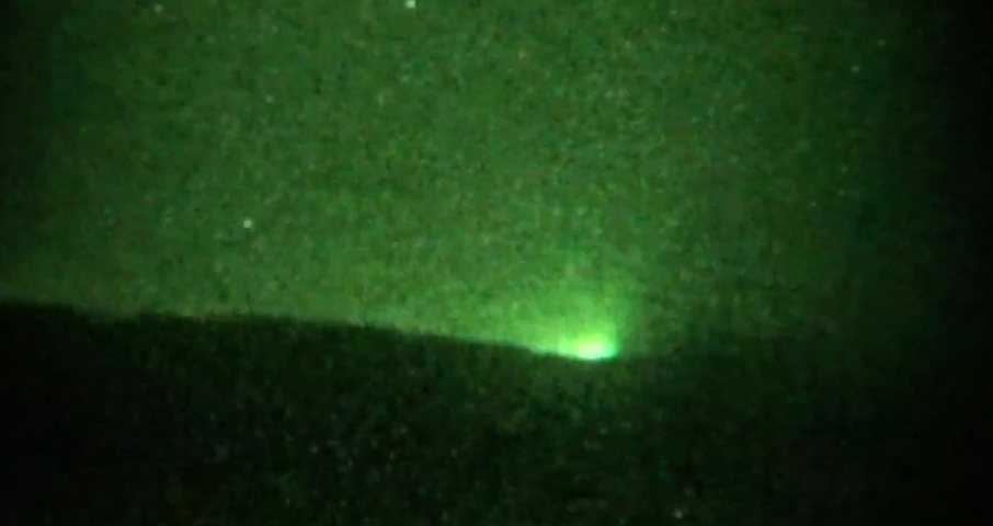 映像では暗視スコープを利用して緑色となっていますが、その光は、灯台の光のように強い白いものであり、はっきりと肉眼でも光線を確認できるほどでした。