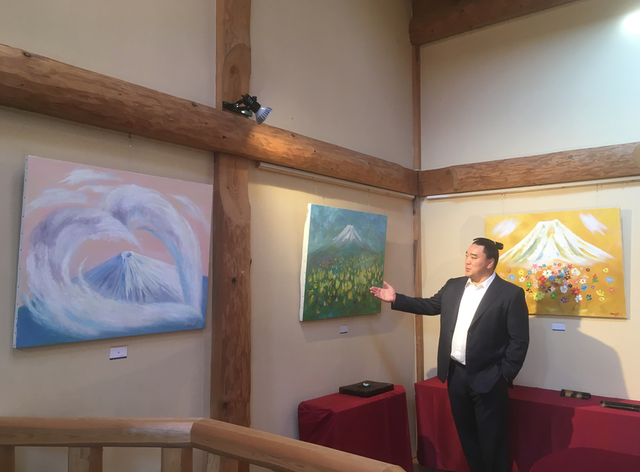 本日は、八ヶ岳の龍の画家である新月紫紺大先生のギャラリーにて、ダワーニャミーン・ビャンバドルジ氏(元横綱 日馬富士関)の絵画展オープニングパーティーに参加。