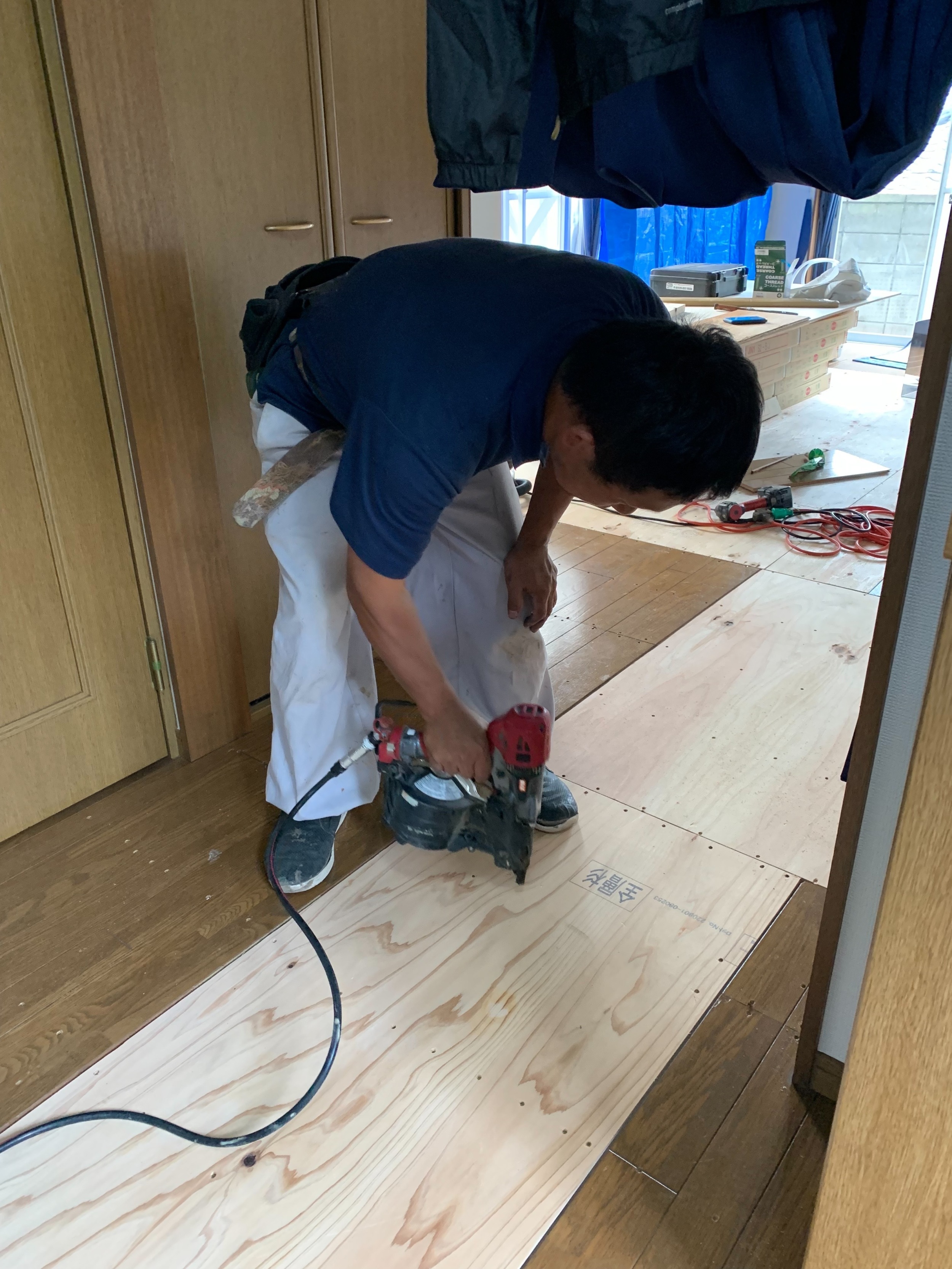 配管した後も、石膏ボードを貼って