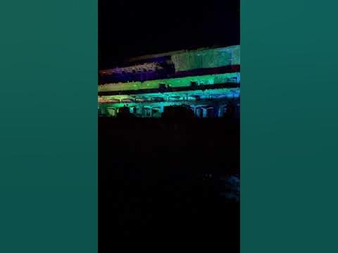 闇の中でライトアップされた選鉱場は、神秘的な雰囲気です。