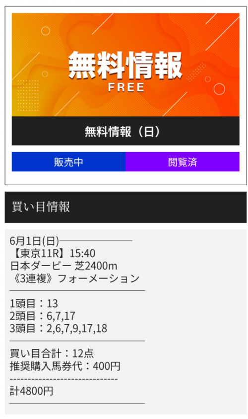 無料買い目情報