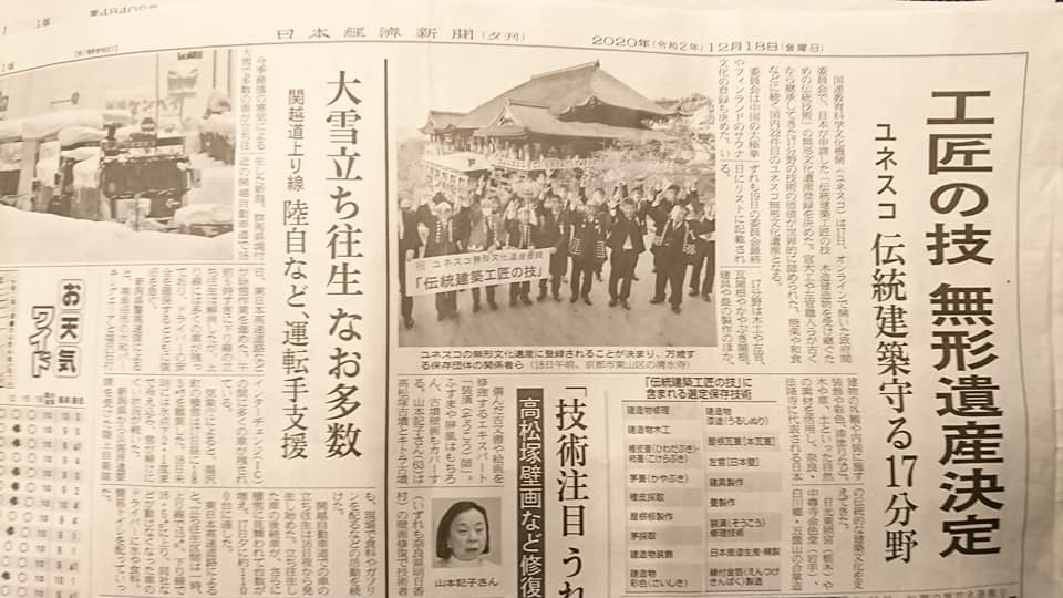 2020年12月 「国際連合 科学文化教育機構 ユネスコ:UNESCO 世界無形文化資産」認定