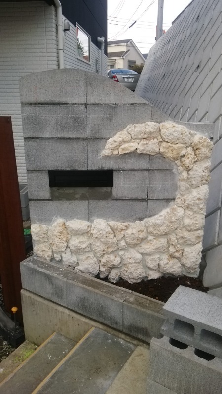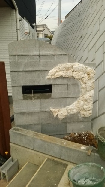 石が不定形なので隙間ができる為、白セメントを使って自然に仕上げていきます。