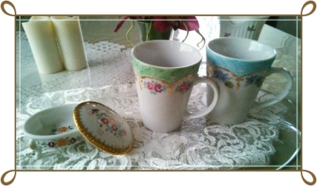 素敵な柄のマグカップは、ハーブティなどを夫と思うと・・・。