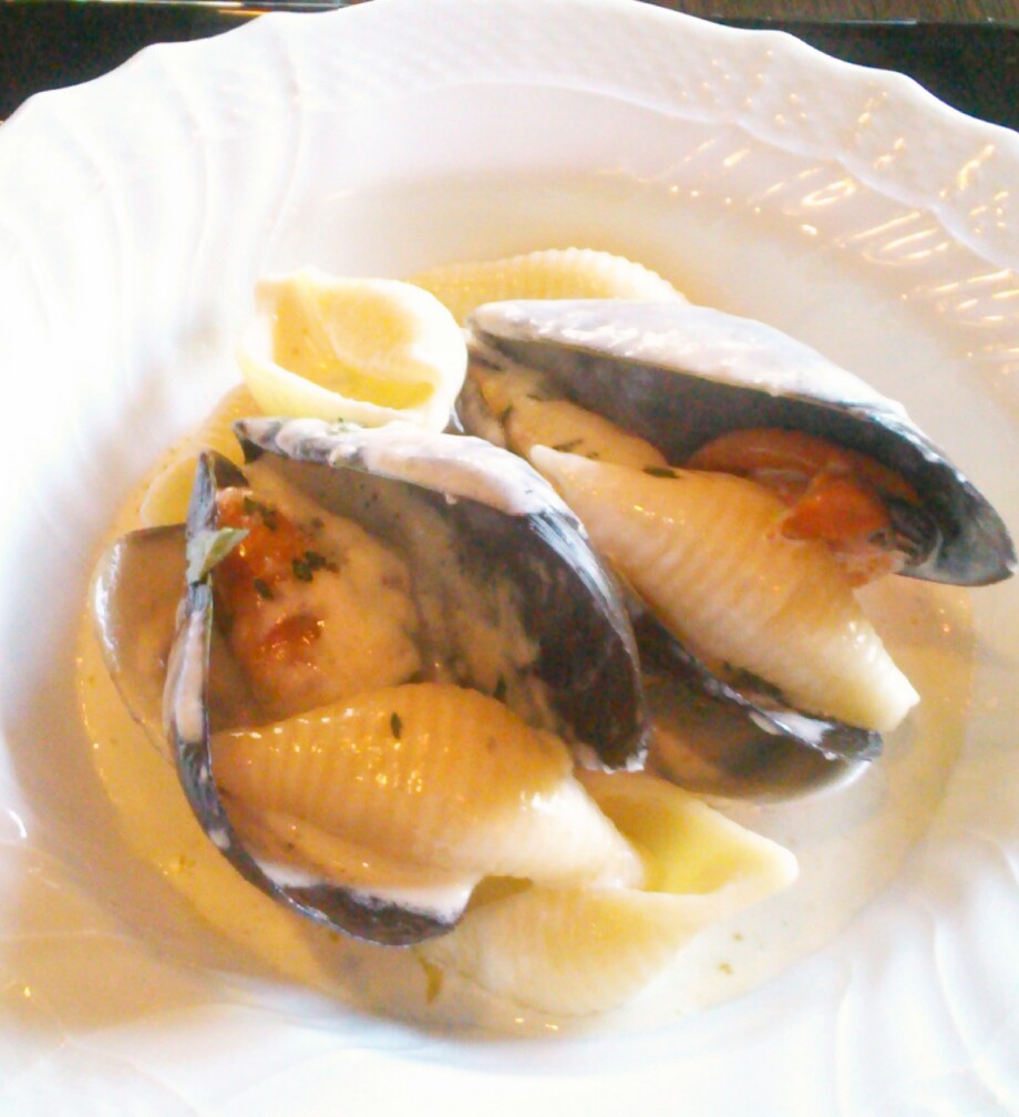 大粒のハマグリと日本産のムール貝を使ったクリームパスタ。
