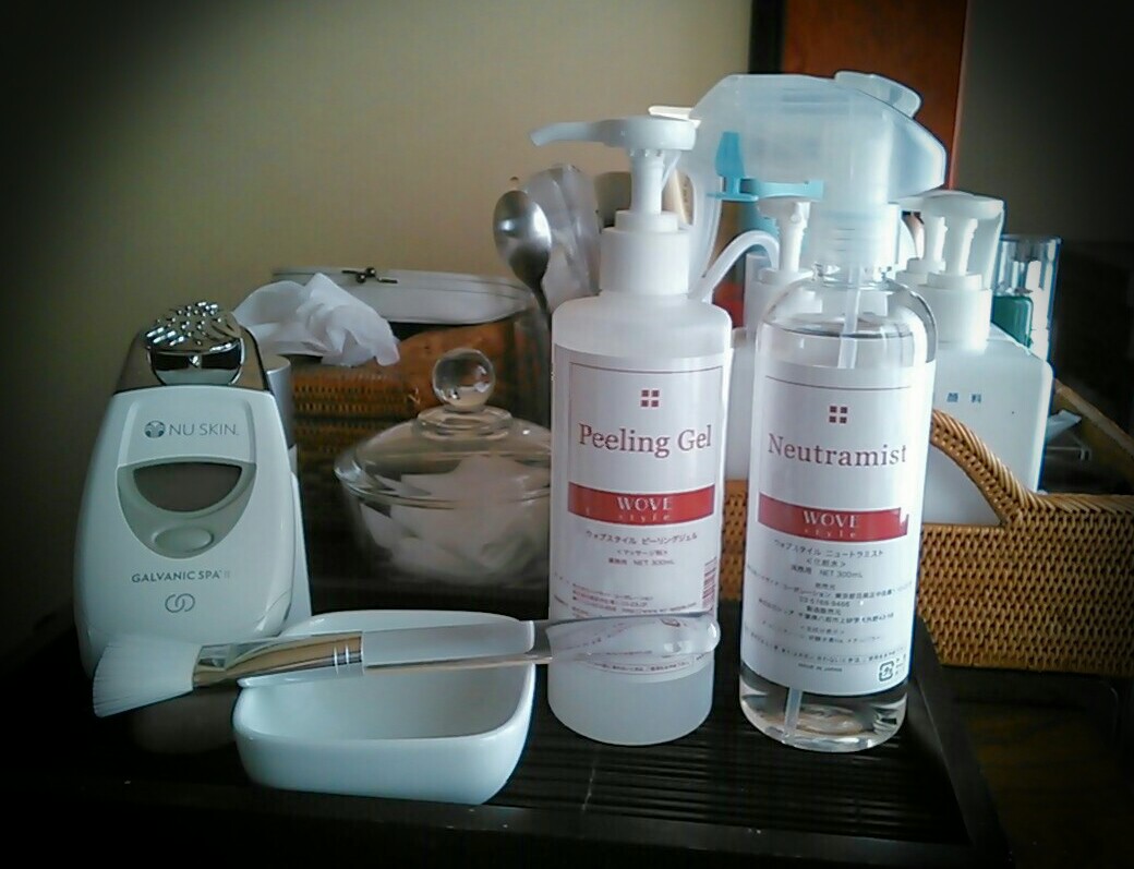 お肌をみると相当の乾燥肌だったので、まず、アクアゲル(カオリ・ジャパン)とエンハンサー(ニュースキン・ジャパン)、ヒアルロン酸原液(ナチュラルショップ)を勧めました。