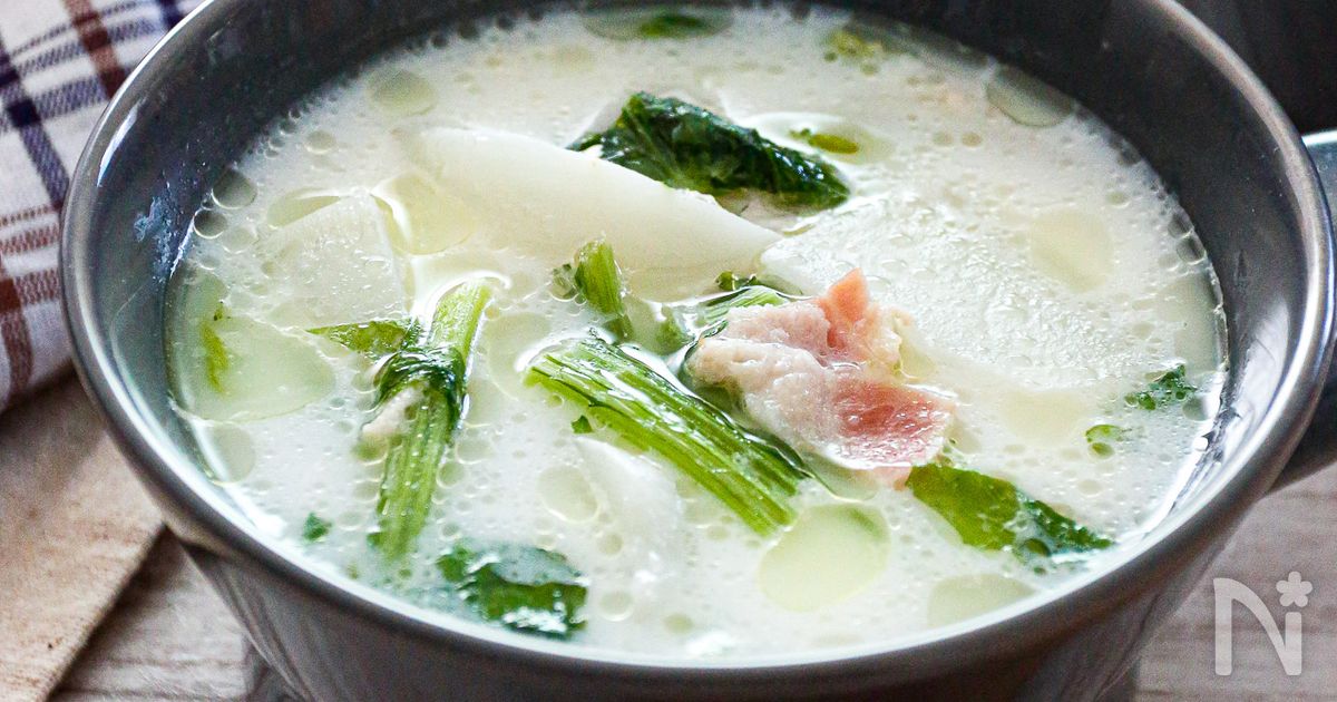 かぶとベーコンの白だしミルクスープ