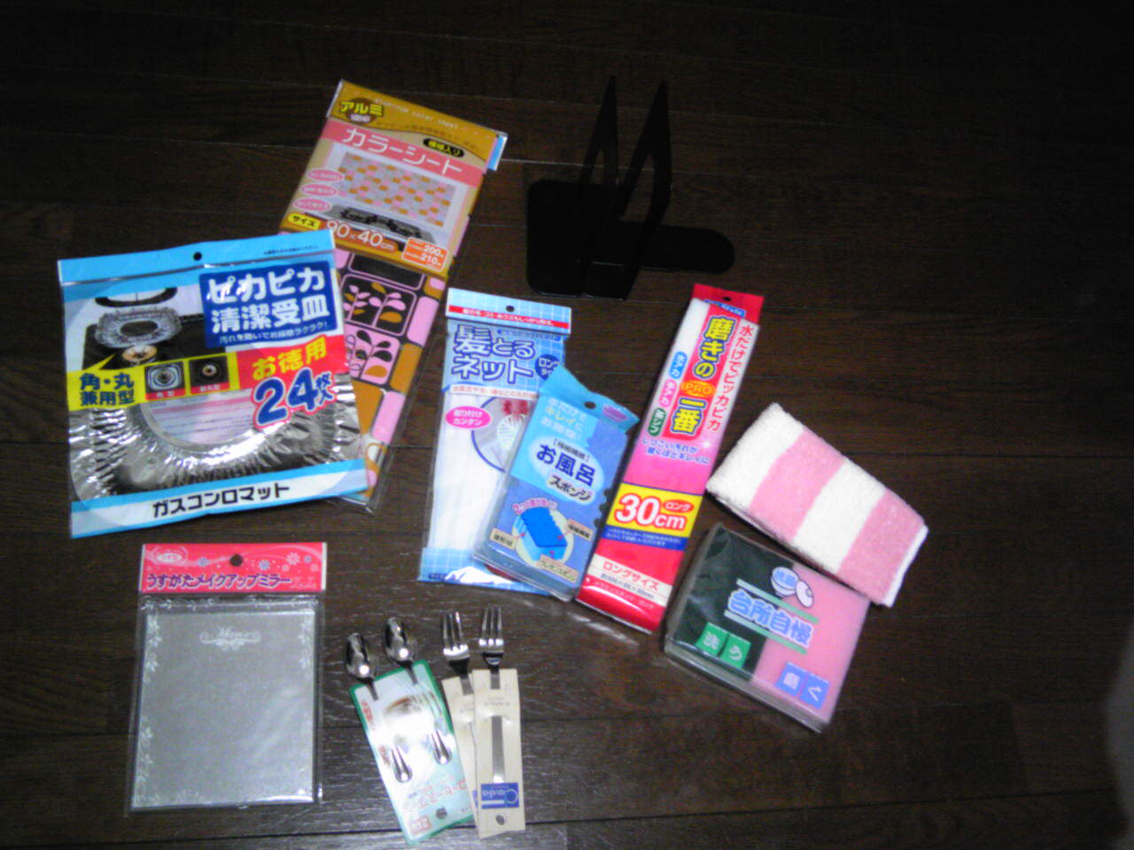 ☆18W 手に入らず…☆電気屋さんに行ったものの、18Wの蛍光灯が見つからず…ついつい近所の100円ショップに行ってこんなに買ってきましたーなんだか、掃除グッズが多いこの一週間のお掃除デイズでだいぶダメになっちゃったからねー来年からはこの子たちと一緒にマメにお掃除して行きまーすさて。実家に帰りますか。