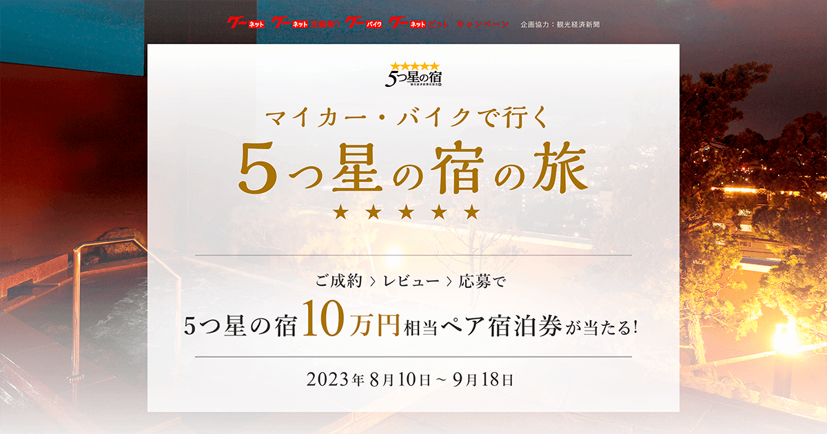 本キャンペーンは、グーネット、グーワールド、グーバイク、グーネットピット、グーネット定額乗りで同時開催されます。