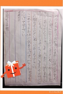 ↓ 先ほどの手紙を持って記念撮影(小3の生徒さんです。)
