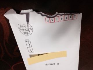 ↑ いつも、封筒はペーパーナイフで綺麗に切るのですが、今回はポストに入っているのを見つけて、その場で破りました(笑)