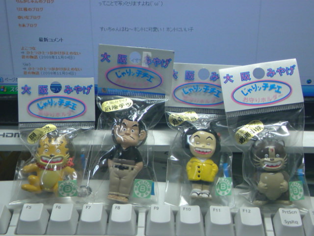 必勝小鉄ついに手に入れた!いや、たまたま新大阪に出かけて発見。どこも売り切れやったもの。じゃりン子チエのキーホルダー。全部買うてもうた。(w中でも絶対に欲しかった“小鉄”名目は「必勝小鉄」これで負けっ放しやったのを勝たせてもらいますよ。もう最後やから。しかし、勢いで買うたものの、小鉄以外、どうしよう・・・。乙(ノ∀`*)乙