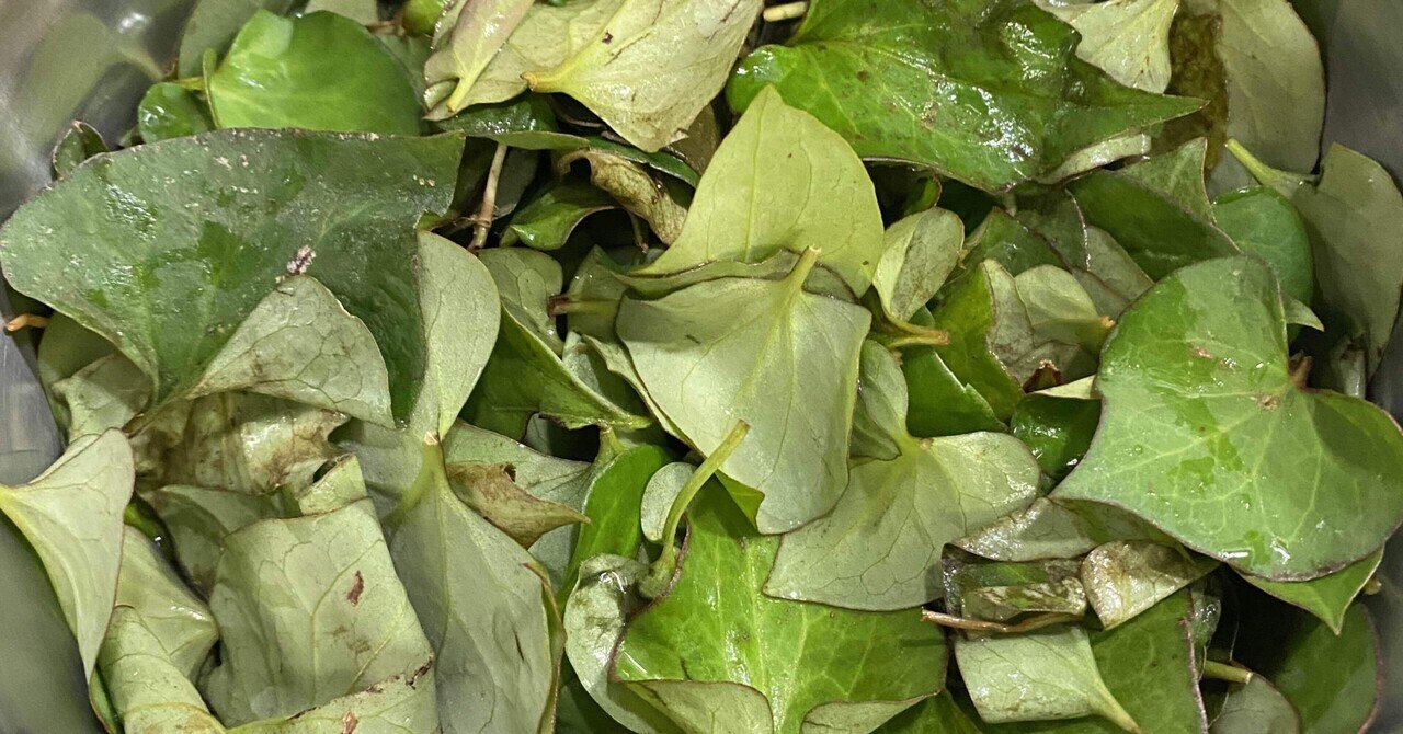 早速ドクダミを収穫し、葉っぱと枝をわける。