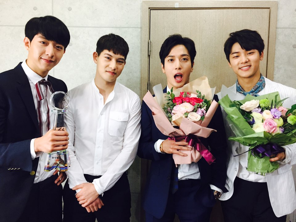 4月15日22時27分「音乐银行第一~谢谢大家给予我们这么多的爱!!! 一直心存感激~