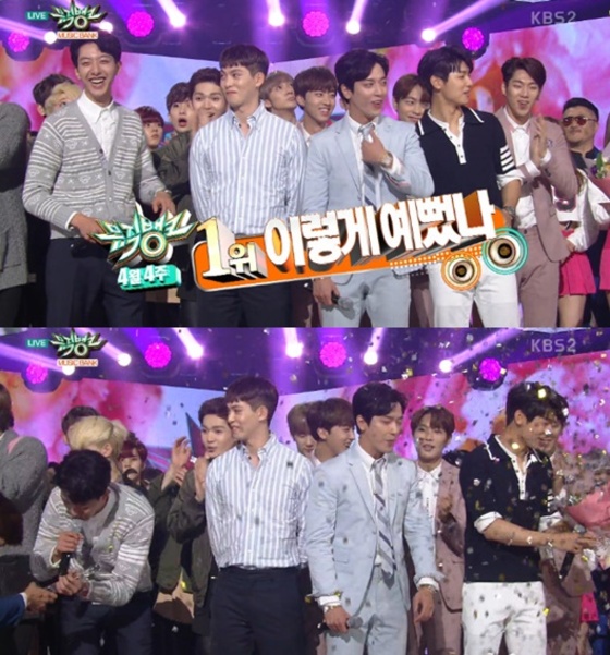 CNBLUEは22日午後5時放送されたKBS2「ミュージックバンク」で「こんなにきれいだったか」でブロックBを抜いて1位を自律した。