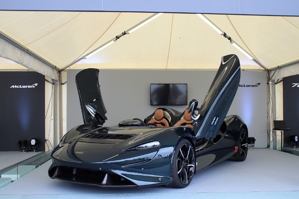 日本で2020年4月に初公開されたマクラーレン「エルバ」。屋根どころかフロントスクリーンもない、往年のレーシングカーのようなスタイルが特徴的だ。今回、この「エルバ」に試乗する機会を得たので、レポートをお送りする! https://t.co/Nz9sn09rub