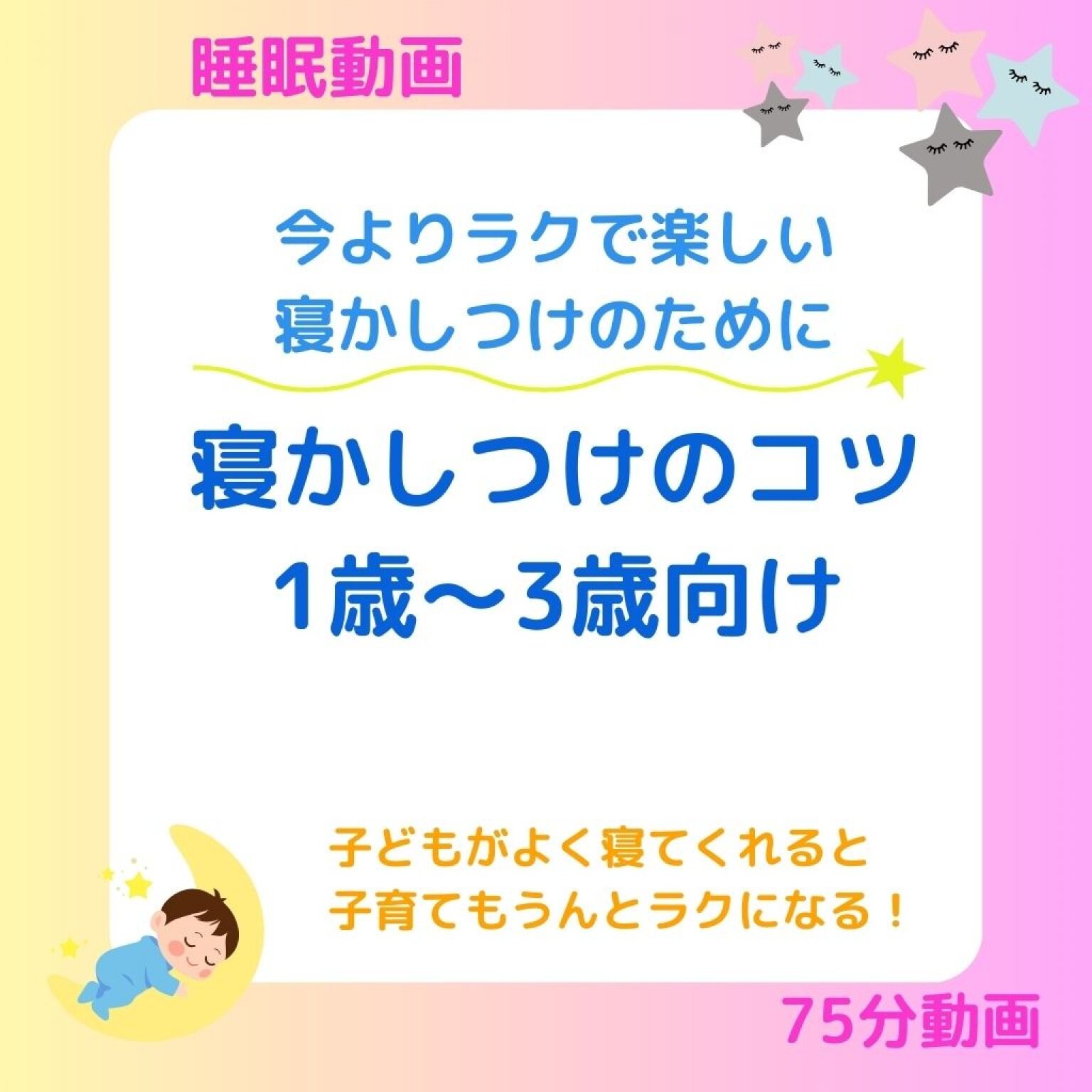 今よりずっと寝かしつけがラクになる〈寝かしつけのコツ〉を集めた75分間の動画を発売します。
