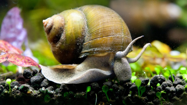 田んぼの悪役として農家を悩ませているのがジャンボタニシだ。通常のタニシよりはるかに大きく、中には7~8センチになるものもいて、稲を食い散らかす。