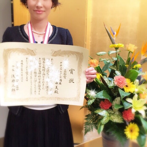 以前学んだナチュラルフードについての成績が認められ文部科学省が推進する奨励賞とメダルが授与されました。