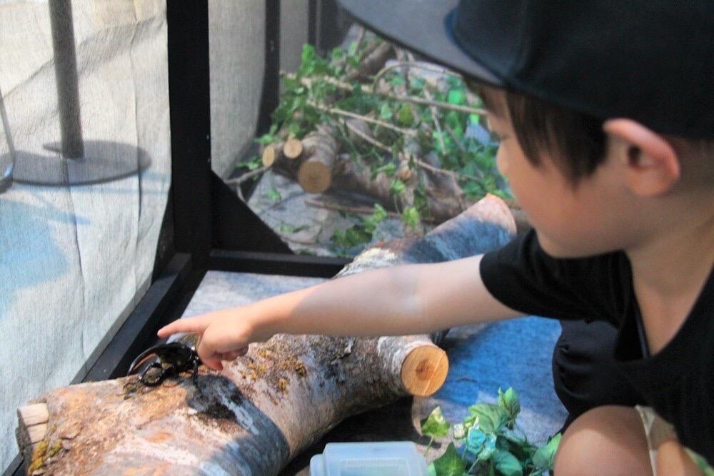 ここに入って、カブトムシを見てました。