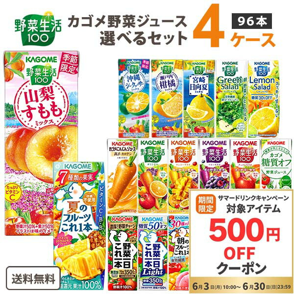 【500円OFFクーポン配布】カゴメ 野菜ジュース 選べる4ケースセット 200ml/195ml 96本(24本×4ケース)野菜生活【送料無料※一部地域は除く】トマトジュース まとめ買い ビタミン 野菜一日これ一本 限定 濃厚リコピン フルーツ 紙パック 桃 シークヮーサー楽天市場${EVENT_LABEL_01_TEXT}