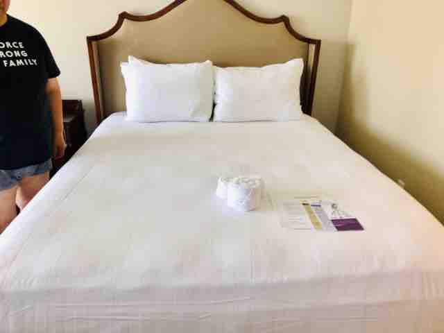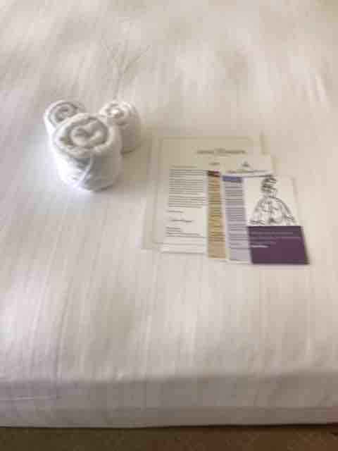 ベッドの上には、タオルアートのウエルカムミッキー❣️