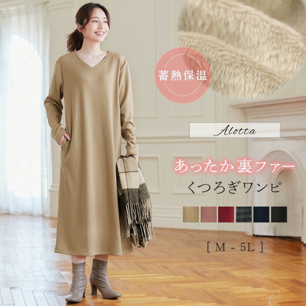 Alotta(アロッタ)【WEB限定】カットソーワンピース 【蓄熱保温】あったか裏ファーロングワンピ(M~5L) レディース ワンピース ロング丈 楽ちん 裏起毛 大きいサイズ マタニティ 体型カバー あったか楽天市場