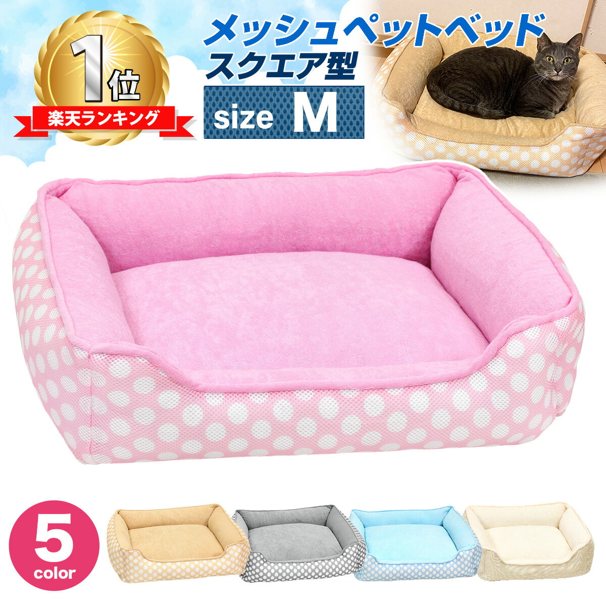 【エントリーでP10倍】 ペットベッド 犬 猫 ベッド マット 夏用 洗える カドラー メッシュ パイル カバー ふわふわ 春夏 2WAY かわいい おしゃれ ソファ ポルカドット スクエア型 Mサイズ楽天市場${EVENT_LABEL_01_TEXT}