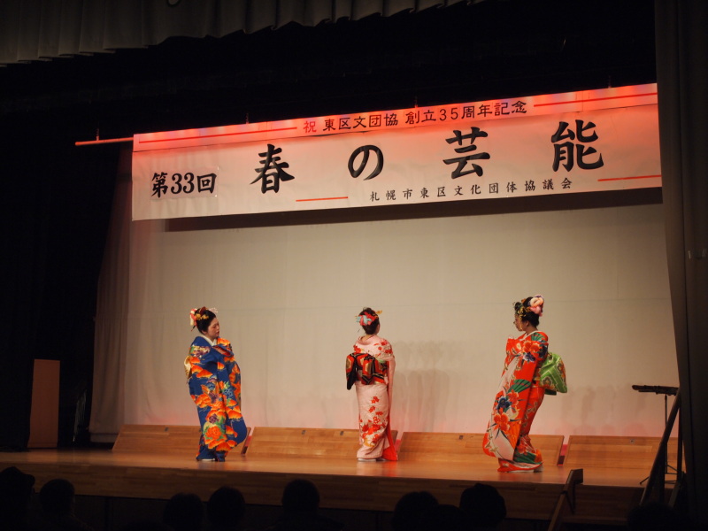 舞台模様です。 遅くなりました、舞台模様をアップします。動画で載せれると一番良いのですが まず、祇園小唄です。 先生、「女子会チーム」と命名してくれました。 着物、本当にすごいんです、どこから先生は見つけてくるのかしらって思うほど、華やかな着物です。 yu
