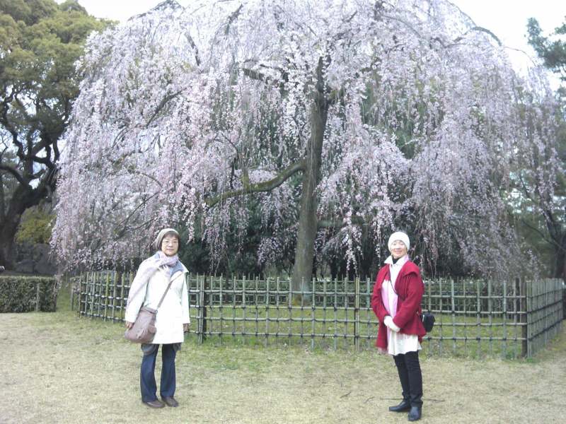 名古屋師範試験の旅は予定通り4日に帰る事が出来ました。突然の春嵐でしたが全て順調に予定こなせた事皆さんに報告します。帰る日京都御所が一般公開されているとの情報。満開の御所ののスナップでこの旅を閉めくくります。二枚の写メ送ります