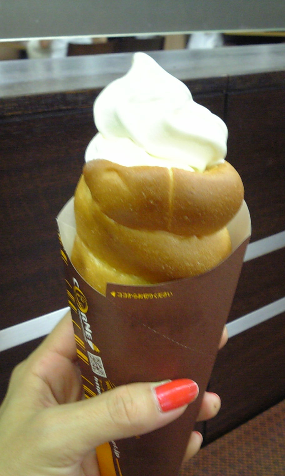 揚げパンにソフトクリームが乗ってるの
