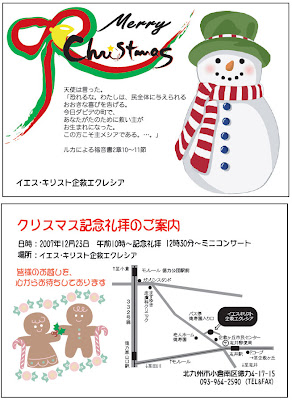 毎年の行事ですが今年も教会にてChristmas礼拝を行います。
