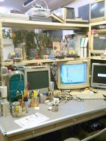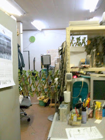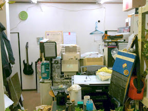 奥は一番奥がtotsu氏の畳屋の事務所机・手前がKHC事務所&バンド練習場&宴会用スペースです。