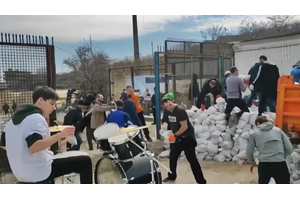 土のうを作っているという。
