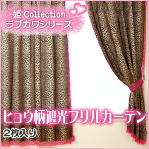 キュートな姫系フリルカーテン♪エロカワ系・小悪魔系・姫系シリーズラブカワヒョウ柄フリル遮光カーテ