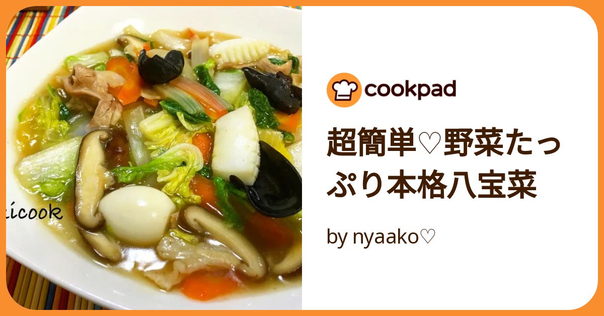 超簡単♡野菜たっぷり本格八宝菜 by nyaako♡「超簡単♡野菜たっぷり本格八宝菜」の作り方。2018.05.25殿堂入り! 皆さま感謝です♡ 人気検索1位♡ クックパッドの大人気野菜おかず本に掲載されてます! 材料: 白菜、豚肉、.塩コショウcookpad.com