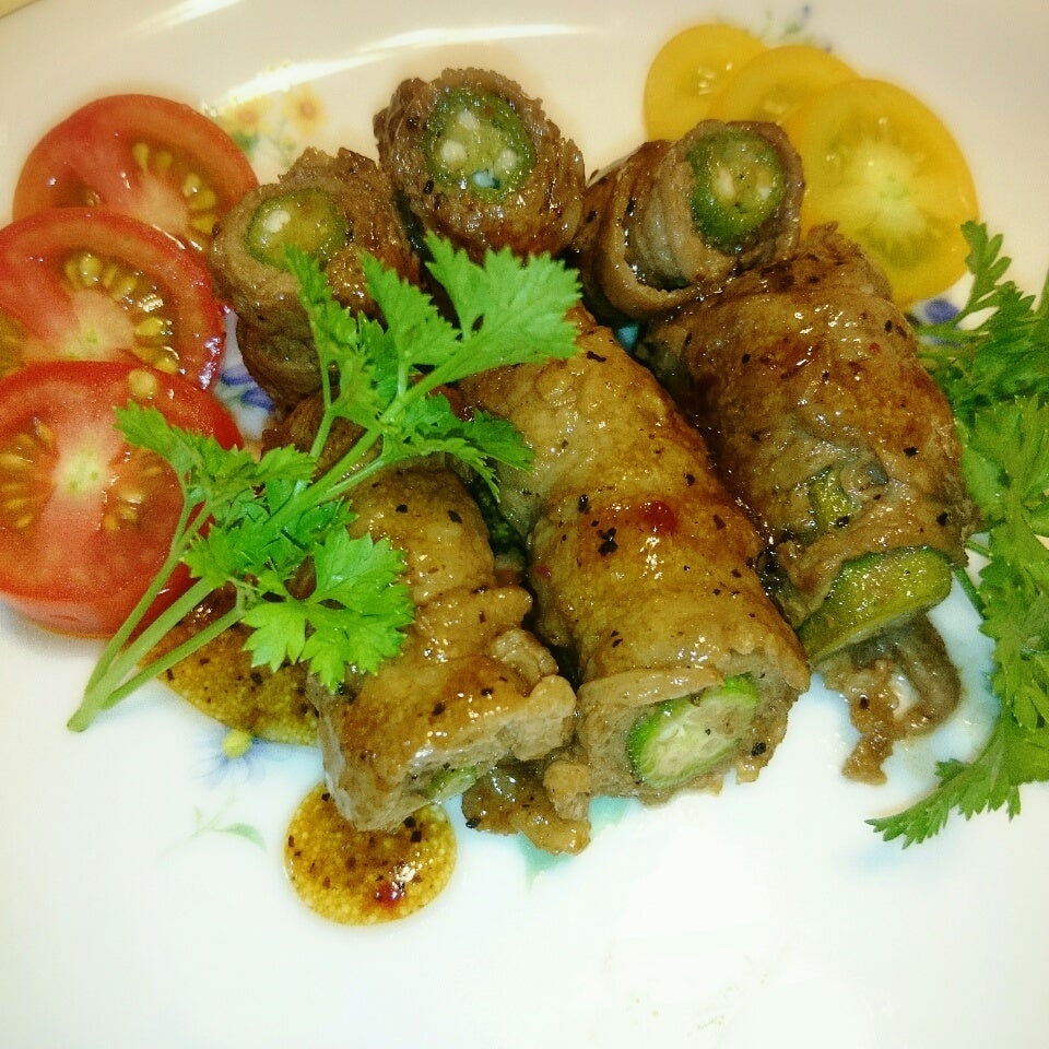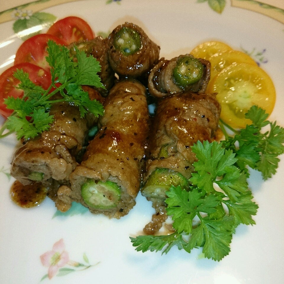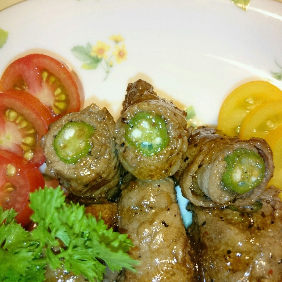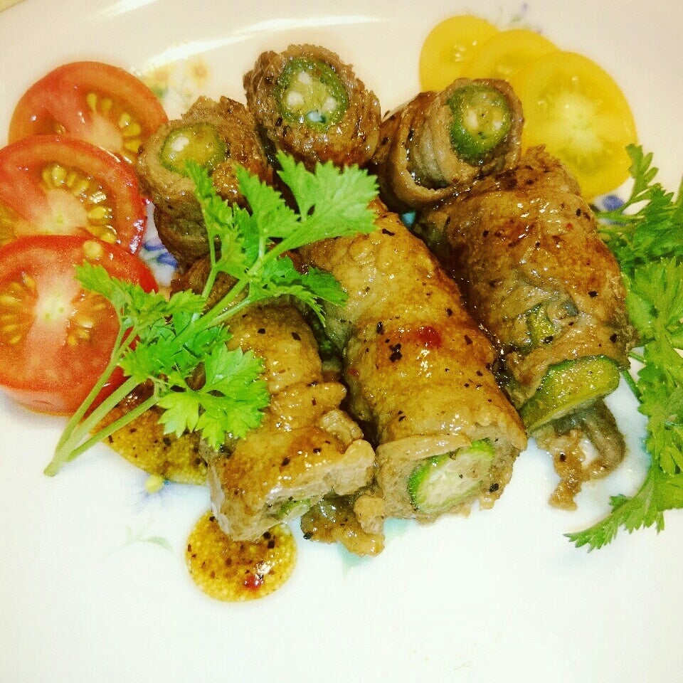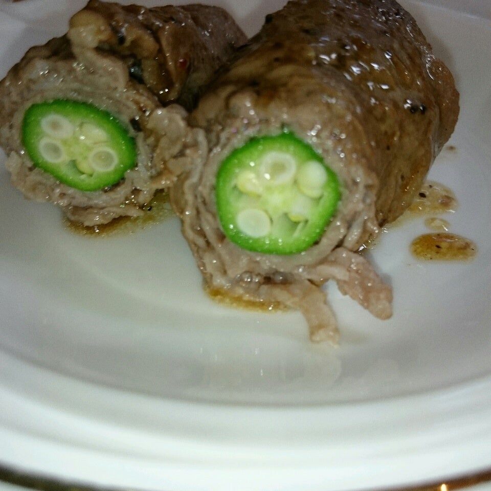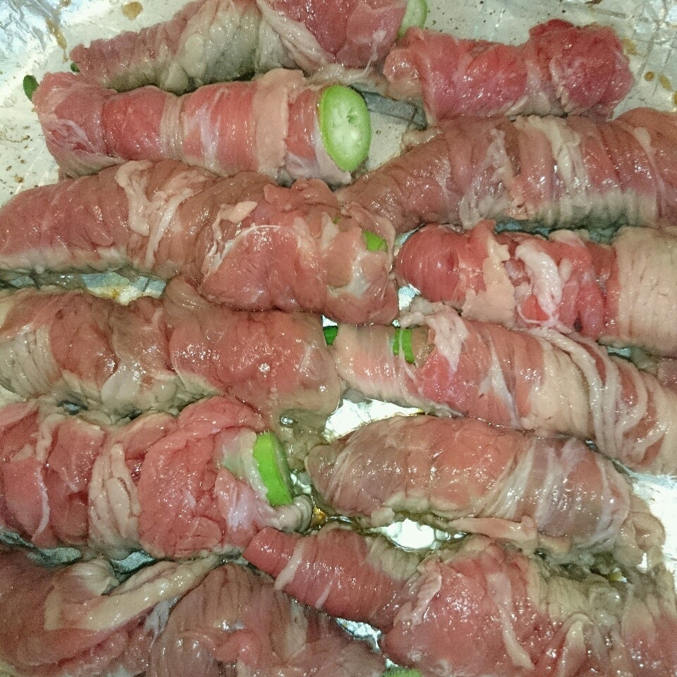 オクラ(今回はしゃきしゃき感を残すため茹でなくて良いですよ~)にハーブミックスソルトをふり牛肉を巻き