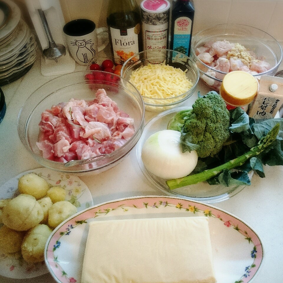 05ぐつぐつチーズの香りで赤ワインを飲みながら唐揚げ、ポテトサラダを作りました~☆チーズを混ぜるのお忘れずに♡