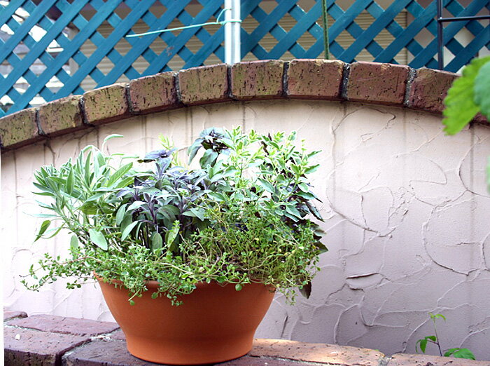 初めてハーブの寄せ植えもしました。
