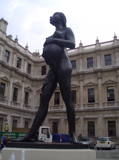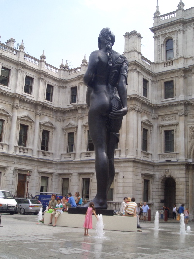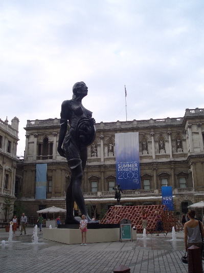 ロイヤル・アカデミー・オブ・アーツの入口を入った前庭にはダミアン・ハーストの巨大な彫刻が!