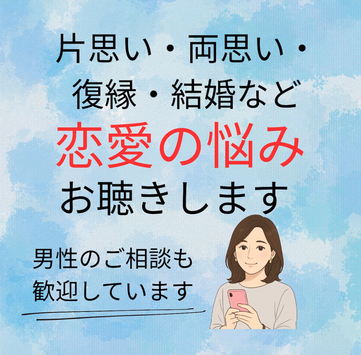 ココナラ電話相談では恋愛に関するお話をお聴きしています。