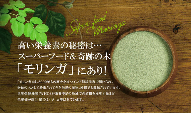 新たなスーパーフードとしてセレブも大注目のモリンガが配合されています。