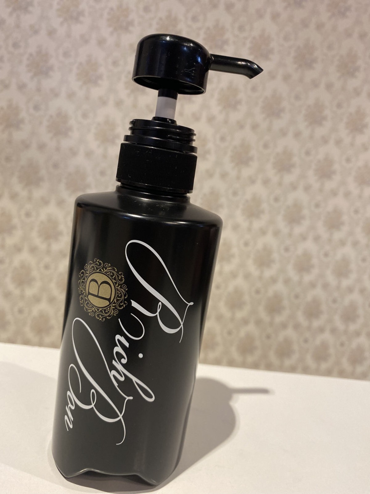 黒いボトルに筆記体の白い文字がデザインされていて、素敵です。