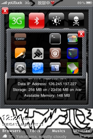 Springboardっていう、iPhoneの見た目を表示している部分を再起動する!見た目を変更するカスタムをしたあとにやる必要あり。