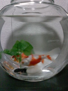 写真はこの前楽屋でぴちゃぴちゃと泳いでいた金魚です~(^Д^~)♪ 金魚ずっと見てると小さい頃のお祭りの金魚すくいを思い出すんだ~(^_^)…ホァン…ホァン…ホァン…ホァン…………!小さい頃は金魚すくいに行くと必ず黒い金魚が捕りたくて何度もチャレンジしたんだo(^o^)oでも不器用だから一度も捕れなくてね( ̄▽ ̄;)♪ いつも泣いて金魚すくいのおじちゃんが泣き止まないからって黒い金魚くれたんだ( ^^)☆
