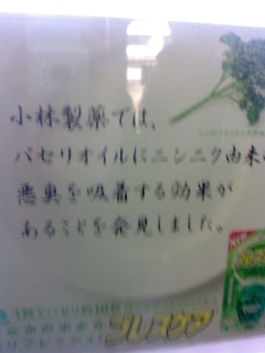 移動中今映画の顔合わせに山手線に揺られながら向かっていま~す♪今日のへぇ×2ポイント~(^Д^~)パセリってすごいね~↑↑ ニンニクの臭いを消しちゃうんだって(^▽^)皆さんもエチケットには欠かさず気を配りましょ~ね☆
