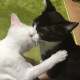 怯えるハチワレ