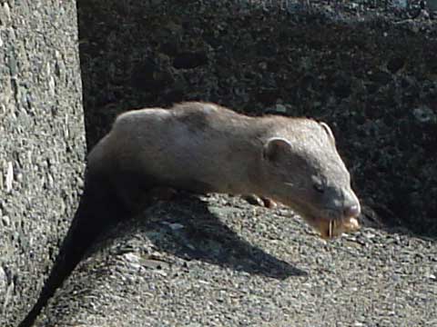 イタチ?今日は昼頃から家族で石狩湾新港の 花畔で焼肉をしました。 札幌は風が全然無かったんだけど 海に着くと結構風が強かったです。 天気がよくて太陽も出ていたので、風さえなければ いい気候でした。 驚いた事に、焼肉を焼いているときに いい匂いがしたのか、イタチらしき小動物が 石畳の隙間からピョコっと顔を出しました。 これは何でしょう?イタチ?テン?誰かわかりませんか? 2枚目の写真は焼いたホルモンを取りにきた写真です。